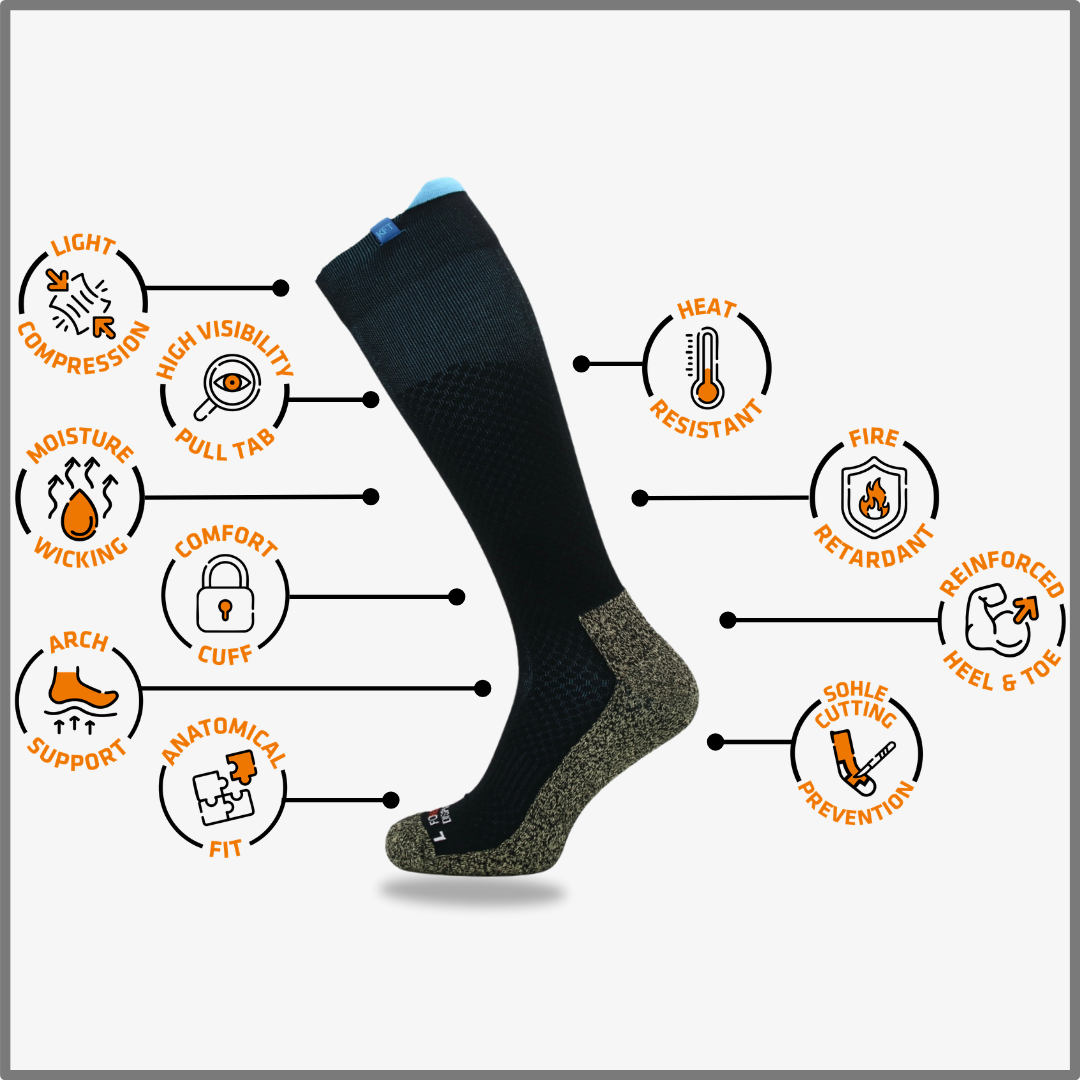 Ze zijn van top tot teen beschermd met geavanceerde persoonlijke beschermingsmiddelen (PBM), maar in de laars blijven standaard sokken vaak de norm.